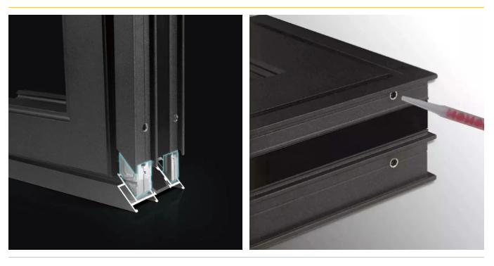 创享115外开窗运用混合张力角码工艺,无缝焊接,角码块两侧对应设置有膨胀部,拧紧螺丝后,往螺丝里面打入,腔体两边膨胀挤压腔体,达到更好的填充性,稳定性比普通角码好,与门窗型材腔体之间无间隙配合,增加门窗框角的强度和平整度,增加窗角码的组角强度。让风雨无缝可入,确保门窗安全、牢固、密封。