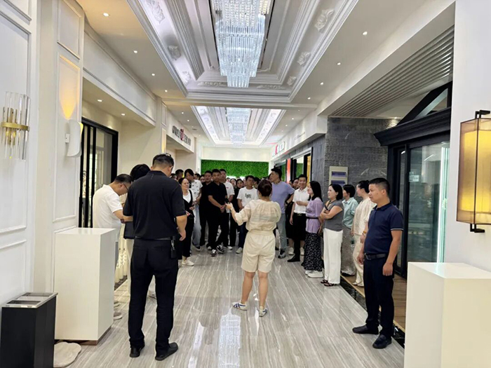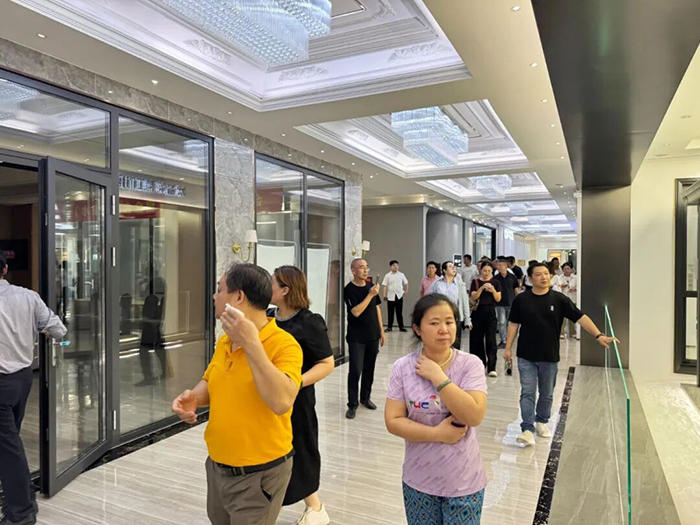 随后参观了欧福莱门窗3000m²智能展厅。在参观过程中,向智华传奇团队一行详细介绍了欧福莱门窗全系列产品设计理念和工艺创新,以更直观的方式感受了欧福莱门窗的场景体验+实验室证据+网红沙龙式的模块化新零售空间。得到了大家的一致称赞,对欧福莱门窗各款产品精湛的技术和过硬品质给予高度评价。